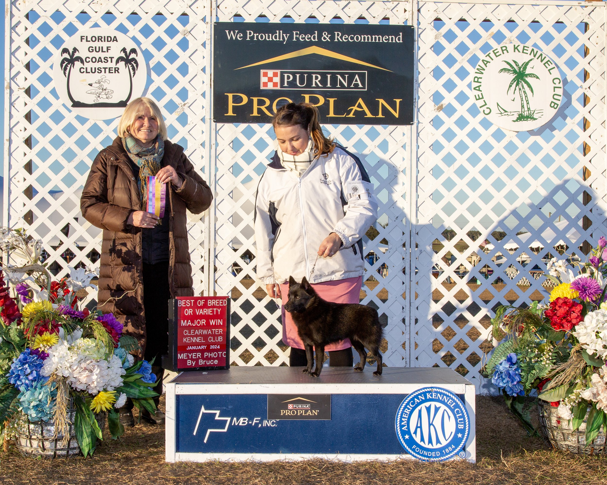 “Priscilla,” is a compact, drivey bitch who exemplifies the Schipperke’s purpose-built heritage. Structurally correct and efficient in movement, she earned her AKC championship with ease and continues to impress with her clean outline and confident presence. True to her roots as a working ratter, Priscilla is our resident vermin hunter — bold, focused, and always ready for a task. Her instincts are matched by a deep devotion to her people; she is affectionate, watchful, and thrives when close to her family. Priscilla brings together type, temperament, and purpose in a way that reflects everything we value in the breed.