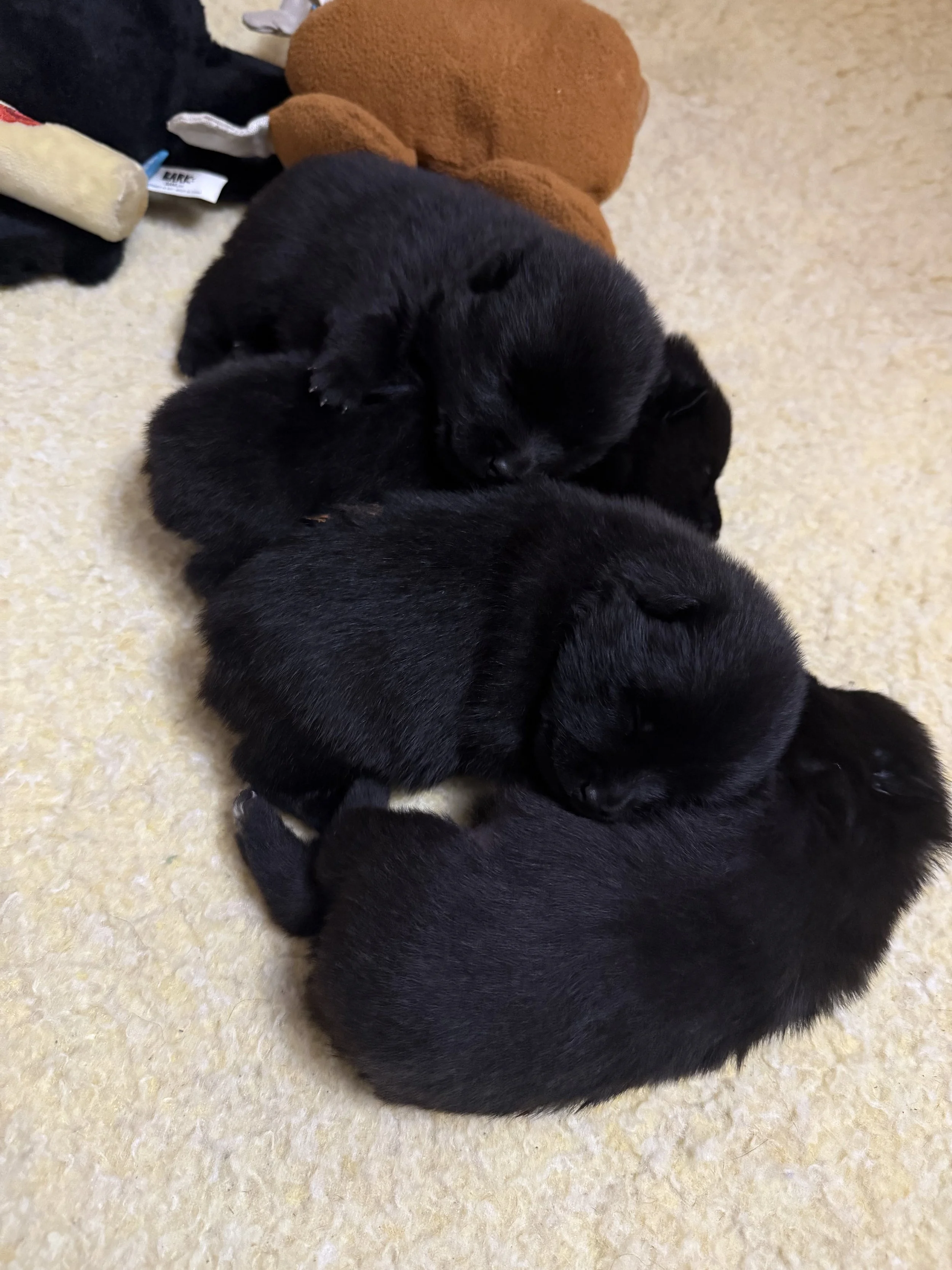 The pups are now exploring with purpose, climbing over each other and investigating every corner of their space. Their movements are faster, their play more assertive, and the first hints of their feisty personalities begin to peek through. These little black bears are full of energy and curiosity, learning the bounds of their world.